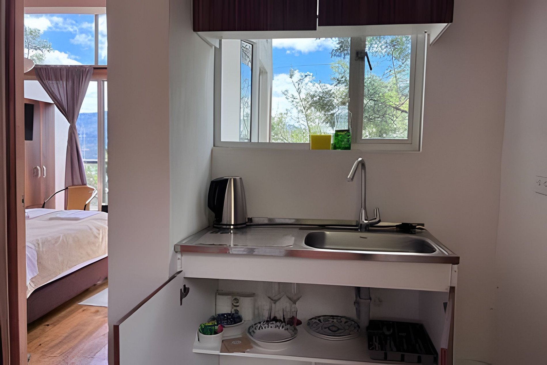 Alojamiento tranquilo, privado y independiente, con dos habitaciones, ubicado a dos cuadras de la plaza principal de Guatavita con vista al embalse de Tomine. Cuenta con cama doble en una habitación y televisión y cama sencilla en la otra habitación . Incluye hervidor con prensa francesa y café, menaje. No cuenta con cocina. El espacio no es compartido con otros huespedes/reservas