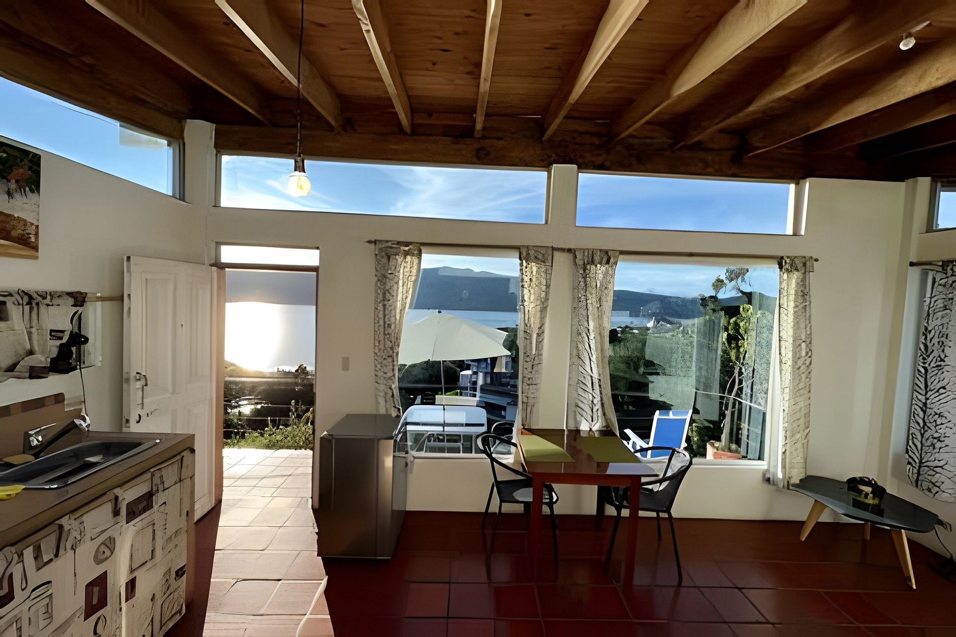 Cabaña tipo Loft, con capacidad para 3 personas, habitación, baño con calentador de paso a gas, sala con sofá cama, comedor y cocineta con dotación. Con vista al embalse de Tominé, rodeada de un ambiente natural y a tan solo dos cuadras de la plaza principal del pueblo.
